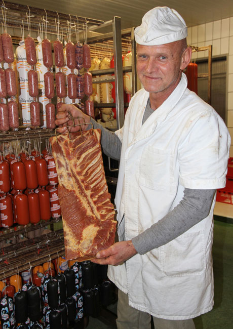 Versuchen Sie unseren beliebten Bauern- oder Lachsschinken, den geräucherten Kamm, Lende, Kasseler oder unseren Räucherbauch.